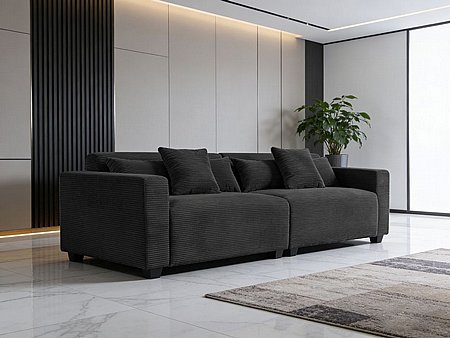בבסיס המושבים רצועות אלסטיות להבטחת רכות המגע, חיזוק מרבי ונוחות מקסימלית. רגלי הספה יציבות וחזקות ועמיד המעניקות למערכת יציבות ומראה יוקרתי במיוחד. מושבים וכריות במילוי רב שכבתי של ספוג איכותי ובתוספת הולופיל לישיבה רכה ומפנקת. בחרנו בבד קורדרוי מעניקה לרוכשים אפשרויות רבות ואיכות לצד עמידות לשנים רבות.